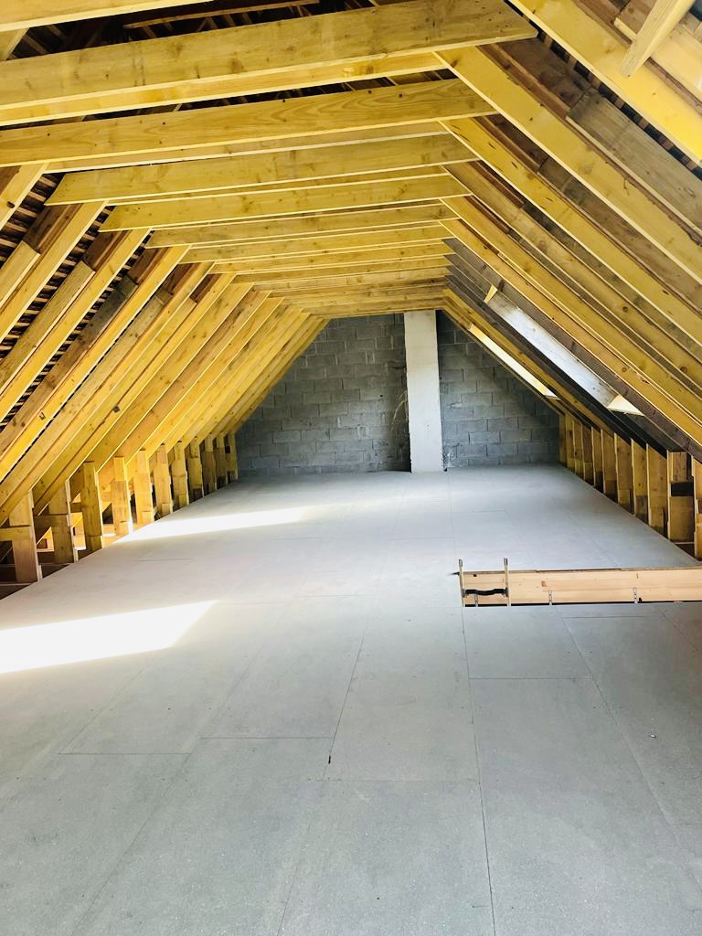 Après avoir effectué les modifications nécessaires à la charpente, notre prochaine étape est la mise en place de l’isolation. Cette étape est cruciale car elle implique le respect strict des normes de qualité pour garantir l’efficacité des produits et leur utilité. Nous réalisons une isolation thermique et phonique pour les planchers, les rampants et les pignons avant de passer à l’habillage des combles. C’est également à ce stade que nous effectuons les travaux électriques et de plomberie nécessaires. Nous installons les gaines électriques, les arrivées et les évacuations d’eau avant de procéder à la pose du plancher. Chez nous, chaque étape est soigneusement planifiée et exécutée pour garantir un résultat de haute qualité conforme aux normes les plus strictes.